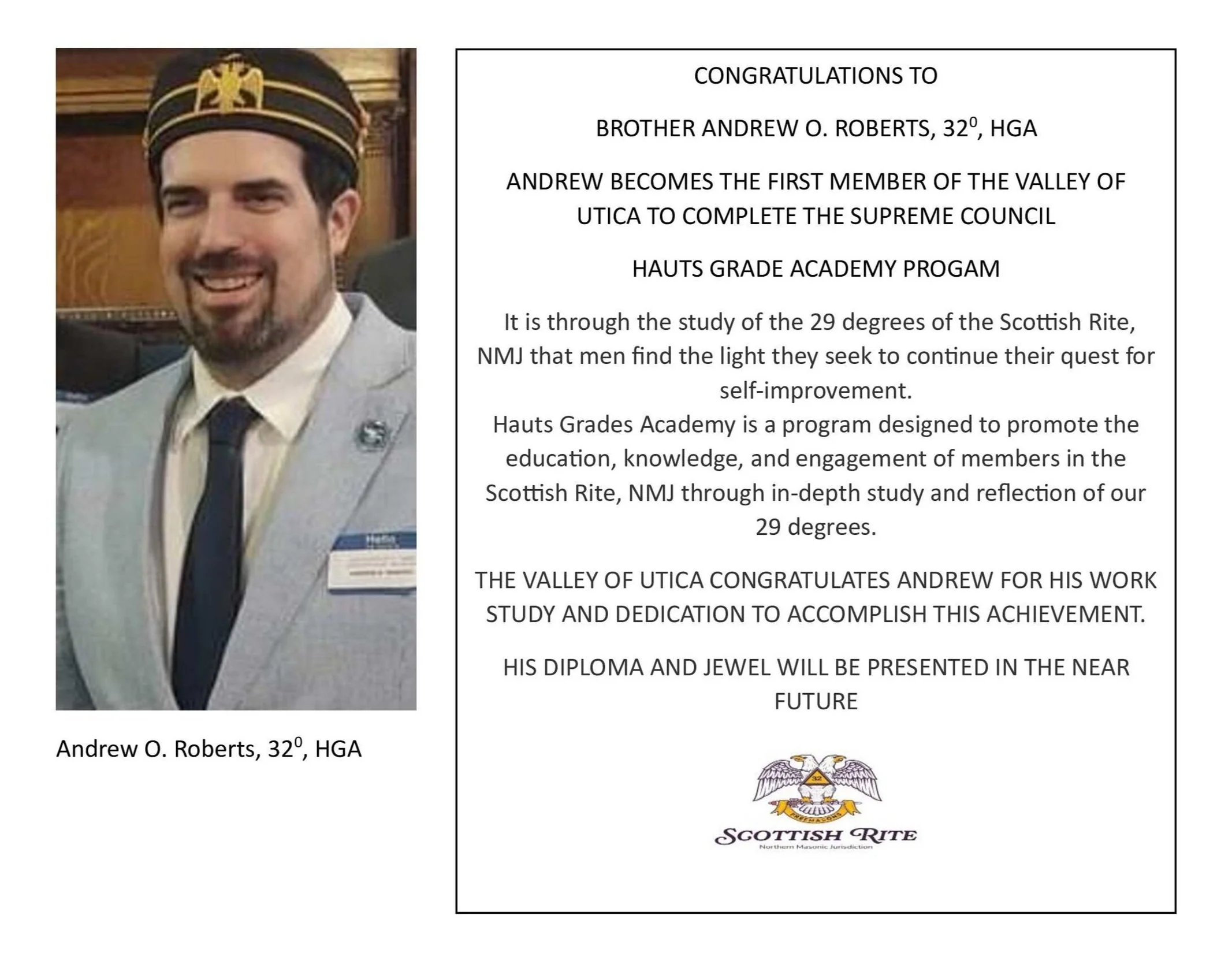 CONGRATULATIONS BROTHER ANDREW ROBERTS, 32°, hga